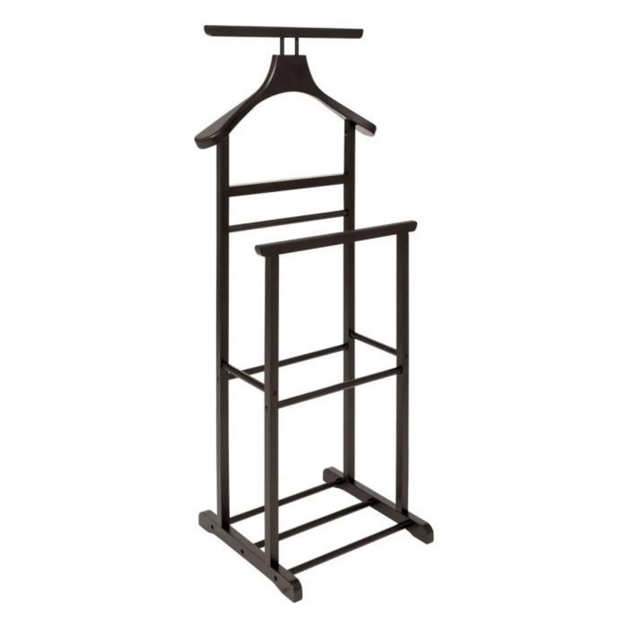 Informations Techniques : Dimensions : L. 47 x l. 35,5 x H. 103 cm Matière : Bois (Pin) Spécificités : Solide & Pratique Valet de chambre antidérapant Cintre spécial veste Label FSC À monter soi-même Poids max supporté : 10 kg Poids : 1,65 kg Couleur : Noir