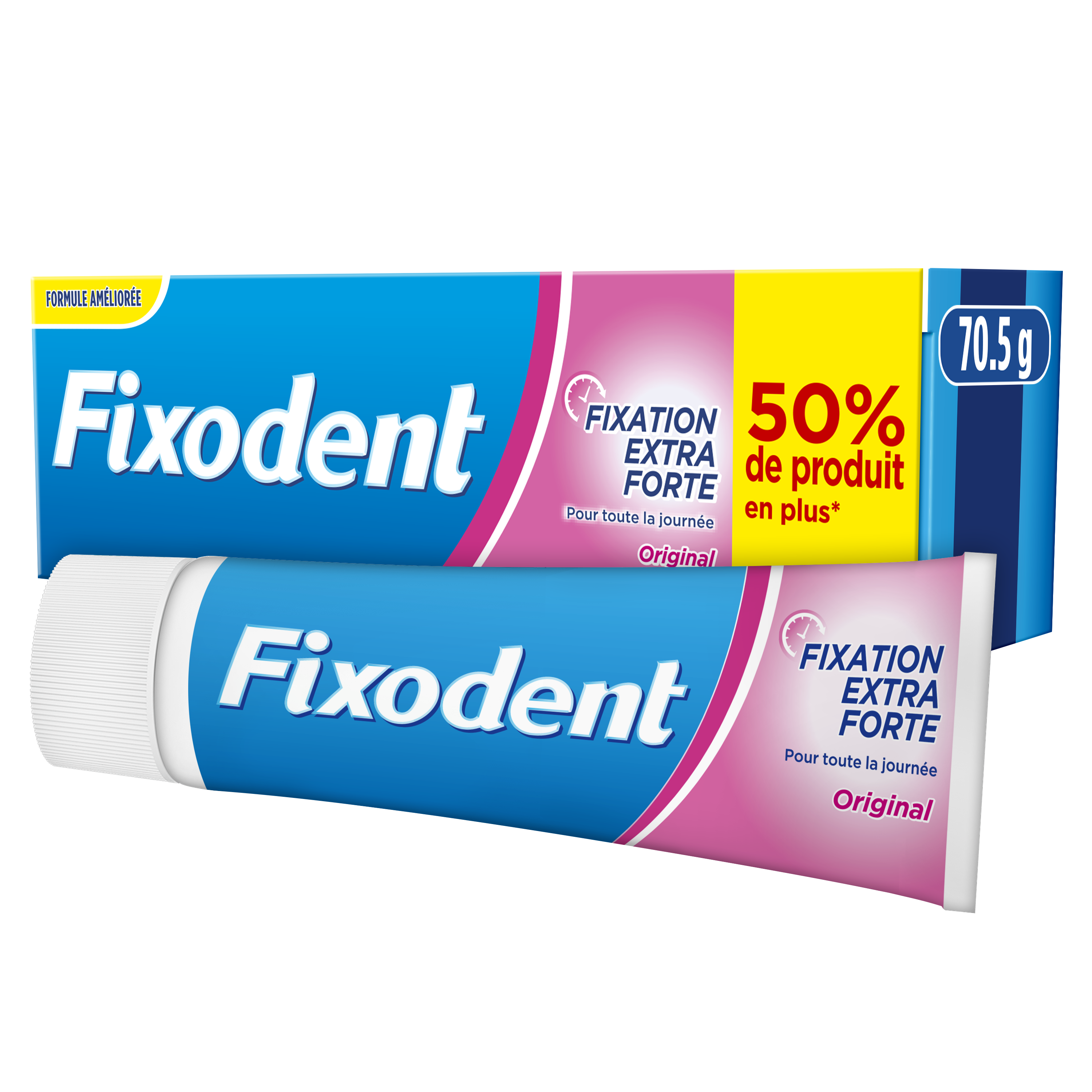 La crème adhésive pour prothèses dentaires Fixodent est le produit idéal pour ceux qui ne veulent plus se préoccuper de leur prothèse dentaire. Quoi que vous fassiez ou mangiez, vous saurez que votre prothèse dentaire est bien maintenue et reste confortablement en place. Fixodent confère une bonne tenue tout au long de la journée et offre un confort amélioré grâce au coussin créé entre les gencives et les prothèses. Elle permet également d’éviter que les résidus alimentaires ne s’infiltrent sous votre prothèse dentaire. Ainsi, vous pouvez simplement vous détendre et profiter au maximum de votre vie. Découvrez-la dès à présent avec le goût Menthe Douce. La technologie Bouclier Antibactérien vous offre une protection supérieure contre la mauvaise haleine et la plaque bactérienne par rapport à un port sans adhésif.