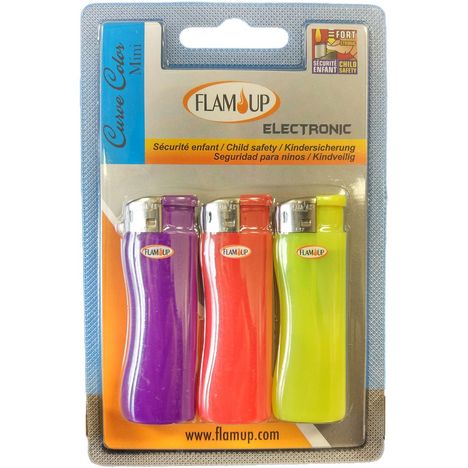 Blister de 3 briquets électroniques . Conforme à la norme ISO 9994 - EN 13869 - SECURITE ENFANT