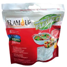 Protège aliments flexible 8 sachets de 3 formats différentes vous permettant de couvrir et de préserver les aliments. Réutilisables passe au lave-vaisselle et au micro-ondes