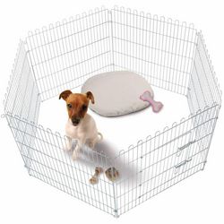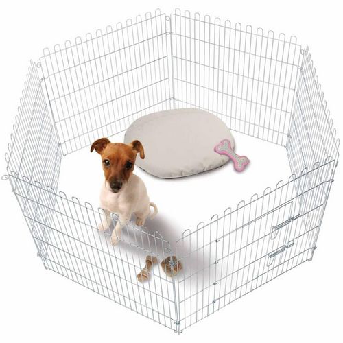 Le parc pour chiots a un diametre de 160 cm et se compose de 6 panneaux robustes avec un motif de fil de maille et une porte pour un acces facile. Le fil epais et les joints securises font en sorte que vos petits amis espiegles ne puissent pas s'echapper. Ce parc pour animaux de compagnie offre suffisamment d'espace pour vos petits amis. Le parc d'exercice pour animaux de compagnie est facile a mettre en place.