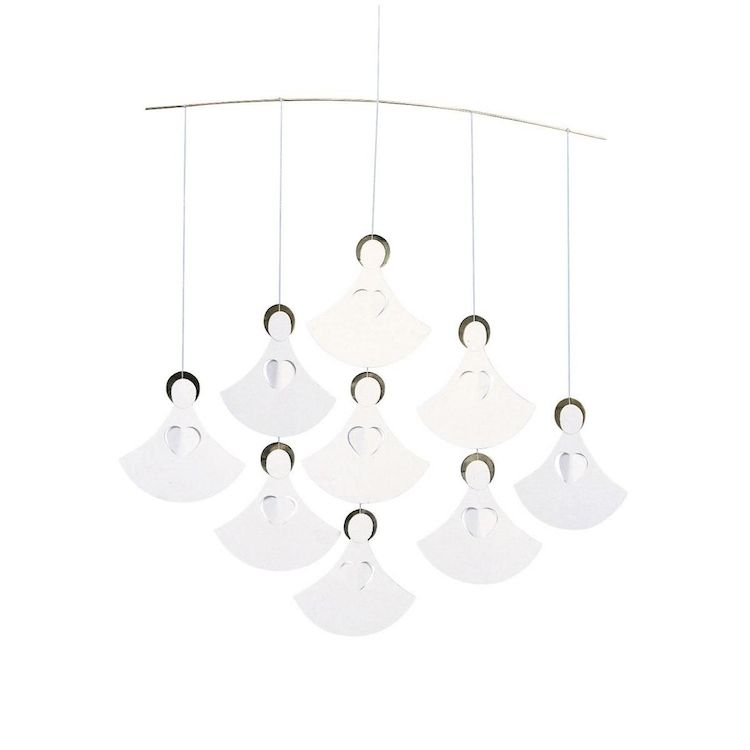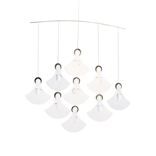 Coeurs d'anges, neuf anges. Année après année, vous pourrez profiter de raccrocher ce gracieux mobile de coeurs. Un éclairage soigné peut créer des ombres fascinantes sur les chiffres. Egalement disponible avec 16 ou 25 anges. Design: Ole Flensted. Taille: 35 x 35 cm. Matériel: Carton