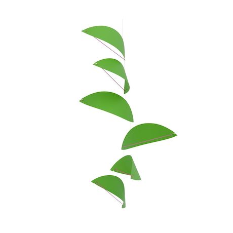 Mobile vert Cerf Volant Flensted Kites. Feuille sérigraphiée. 90 x 35 cm. Assemblé à la main au Danemark, soigneusement emballé dans une boîte coffret. Les mobiles Flensted symbolisent les multiples facettes de la vie, la seule constante étant le mouvement . Même dans les pièces les mieux fermées et visiblement les plus calmes, les mobiles Flensted frémissent au moindre mouvement d'air ou suivent en quelque sorte leur propre inspiration.