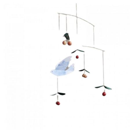 Flensted est heureux de collaborer une fois de plus avec la designer, Carina Caia, dont l'imagination et le flair ont déjà été vus dans 3 autres mobiles à succès, 'Waves', 'Air Flow' et 'Starry Nights'. L'été. Un oiseau en vol au milieu des cerisiers. Comme nous, il est à la recherche du fruit le pl