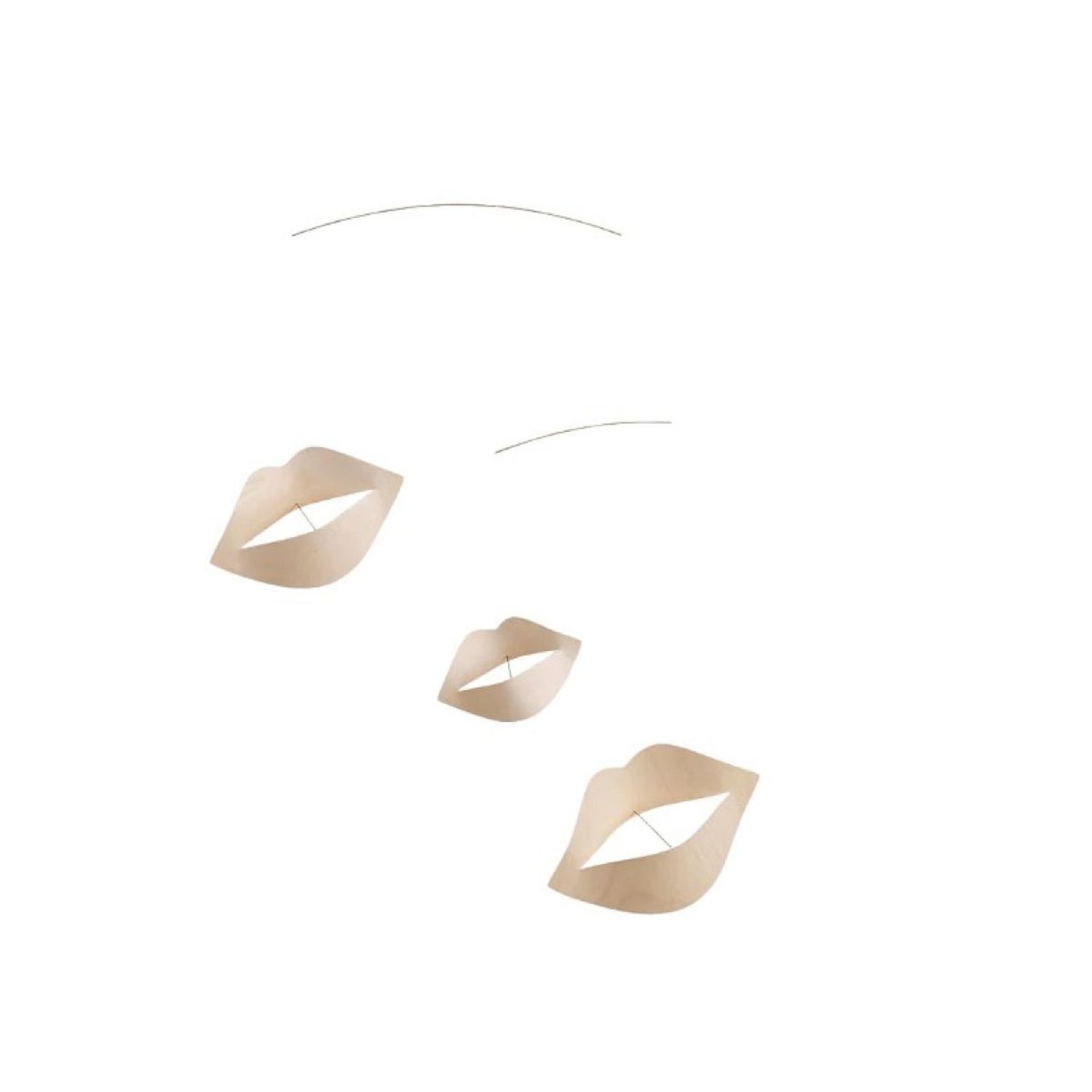 « Kisses - nude » a été créé par Christine Kit Flensted, petite-fille de Christian Flensted, en collaboration avec son partenaire, Mikael Hauberg. Le mobile est réalisé en placage de bouleau et en tiges couleur laiton. Comme tous les modèles de Flensted Mobiles, il est fabriqué à la main au Danemark