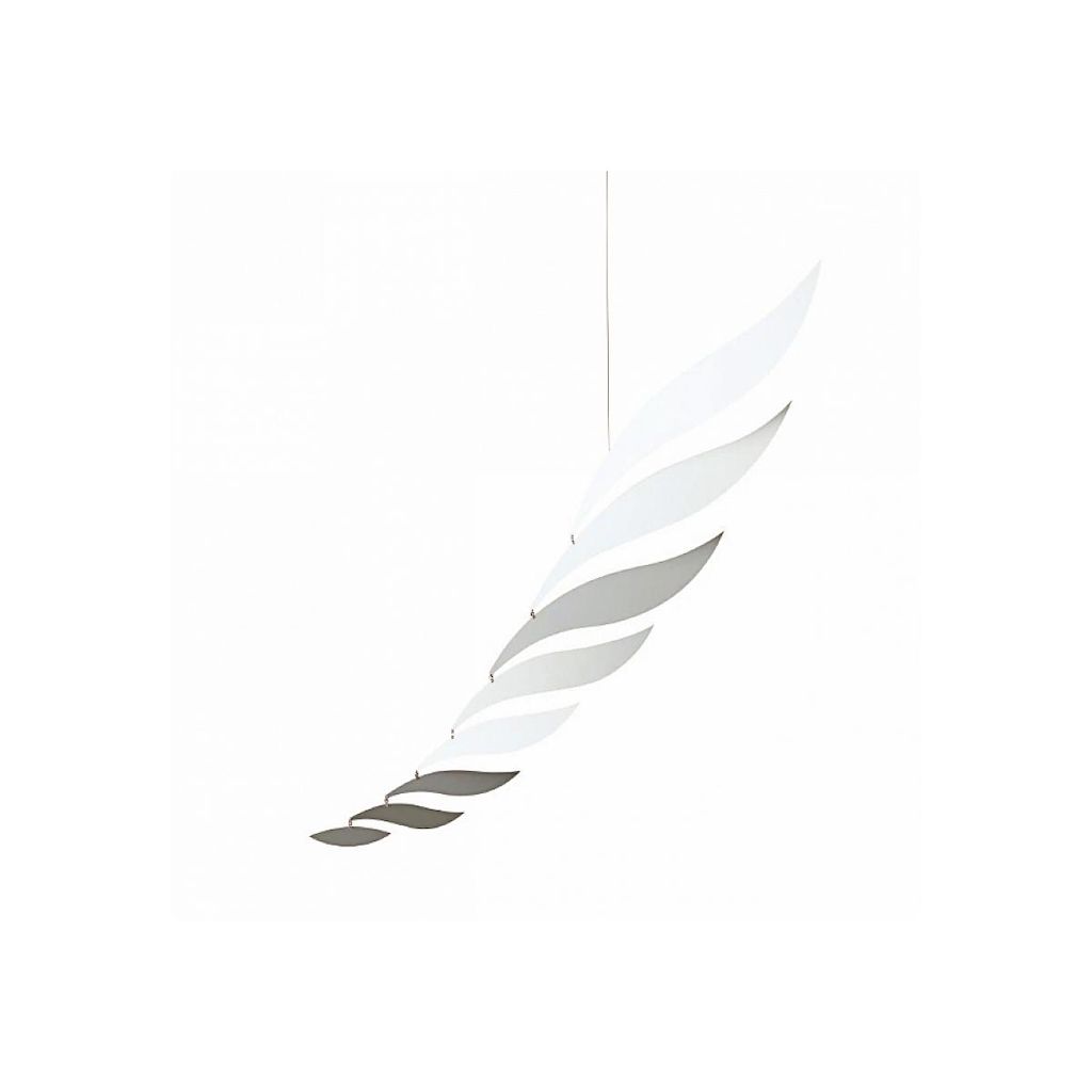 Mobile en Aluminium. Poids 350g. Dimensions 97 x 95 cm la première dimension correspond à la hauteur (de la figure la plus haute à celle la plus basse), la seconde à la circonférence, le tout exprimé en centimètres. Création 1966. Les mobiles Flensted symbolisent les multiples facettes de la vie, la seule constante étant le mouvement . Même dans les pièces les mieux fermées et visiblement les plus calmes, les mobiles Flensted frémissent au moindre mouvement d'air ou suivent en quelque sorte leur propre inspiration.