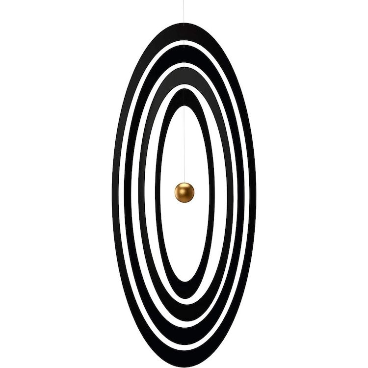 Ellipse de science-fiction verticale xl 102 x 43 cm. Conçu par Christian Flensted et Johannes Lindner. En 2020, le mobile de Christian Flensted datant de 1955, Science Fiction, a été redonné vie par le designer allemand Johannes Lindner. Cette élégante interprétation est faite de sphères en aluminiu