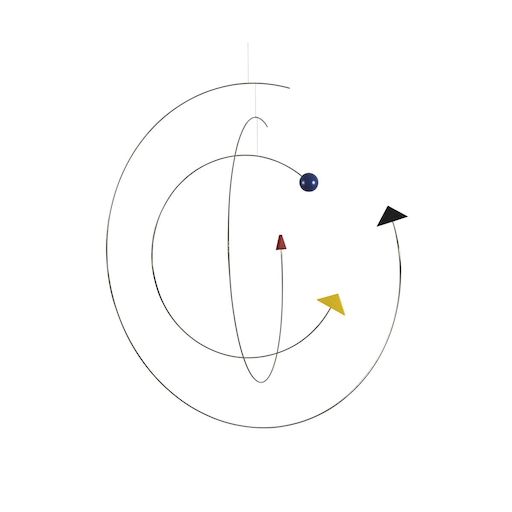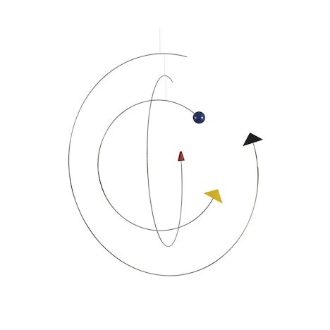 Mobile en acier inoxydable et bois. Dimensions 60x60cm. Création 1998. Les mobiles Flensted symbolisent les multiples facettes de la vie, la seule constante étant le mouvement . Même dans les pièces les mieux fermées et visiblement les plus calmes, les mobiles Flensted frémissent au moindre mouvement d'air ou suivent en quelque sorte leur propre inspiration