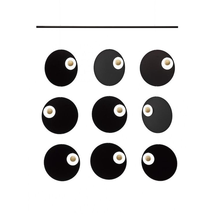 Nous sommes fiers de présenter l'emblématique Squareroot 9 , un mobile conçu en 1972 par le fondateur de Flensted Mobiles,. Christian Flensted. Ce mobile peut être comparé à une peinture - la principale différence est que le mobile s'accroche à 33 cm du mur et que cette pièce d'art déplace et jette