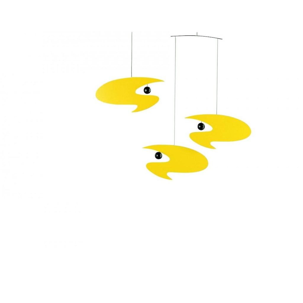Ole Flensted, qui a aujourd'hui repris avec sa femme Aase l'entreprise familiale de ses parents, a conçu ce mobile d'inspiration futuriste. Le mobile Stella Nova peut être interprété à l'envie : imite-t-il les astres, des formes de vie marine, ou les vagues la mer ?. Le nom fait penser aux astres, cependant il n' y a aucune limite à l'imagination. Et c'est bien ce qui est beau dans un mobile. Laissez vous happer dans un autre monde et laissez le stress du quotidien derrière vous !. « Si tout fonctionne correctement, le mobile est un morceau de poésie qui danse et surprend par sa joie de vivre », explique le sculpteur américain Alexander Calder, considéré comme le maître du mobile et qui a porté cette forme d'art à sa perfection. Dans le cas de Stella Nova, il ne subsiste aucun doute : on a répondu aux exigences du vieux maître sur toute la ligne. Matière Plastique. Couleur Jaune. Dimensions Hauteur: 45 cm, Longueur: 45 cm. Poids 410 g (Sans emballage)