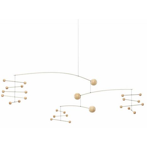 En écoutant Mozart, Ole Flensted a été inspiré à concevoir ce mobile en 1972. Il est maintenant re-conçu dans cette version légère et plus grande. Conception: Ole Flensted. Taille: 38 x 85 cm. Matériau: bois et acier inoxydable doré