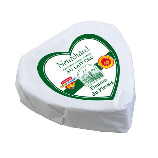 Le Neufchâtel AOP Fleuron du Plessis est un fromage en forme de coeur à la pâte onctueuse dégageant des arômes lactés et salés.