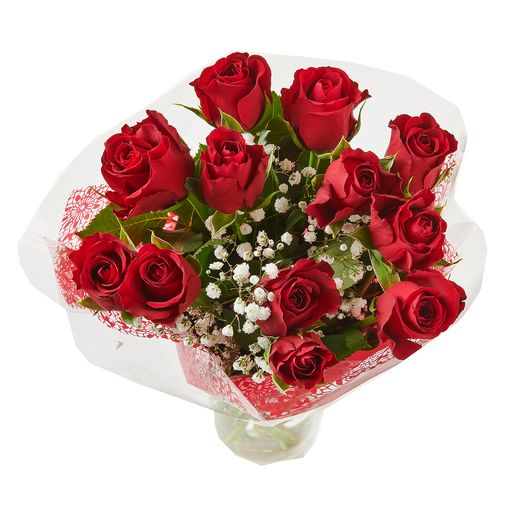 Bouquet de 12 roses rouges et 1 gypsophile