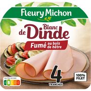 Un blanc de dinde gourmand, issu d'une cuisson douce qui lui apporte du moelleux. Il est ensuite lentement fumé au Bois de Hêtre pour un goût unique.