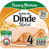Découvrez ce Blanc de Dinde Conservation Sans Nitrite Halal Fleury Michon, élaborée à partir de viande 100% filet, idéale pour accompagner toutes vos envies.