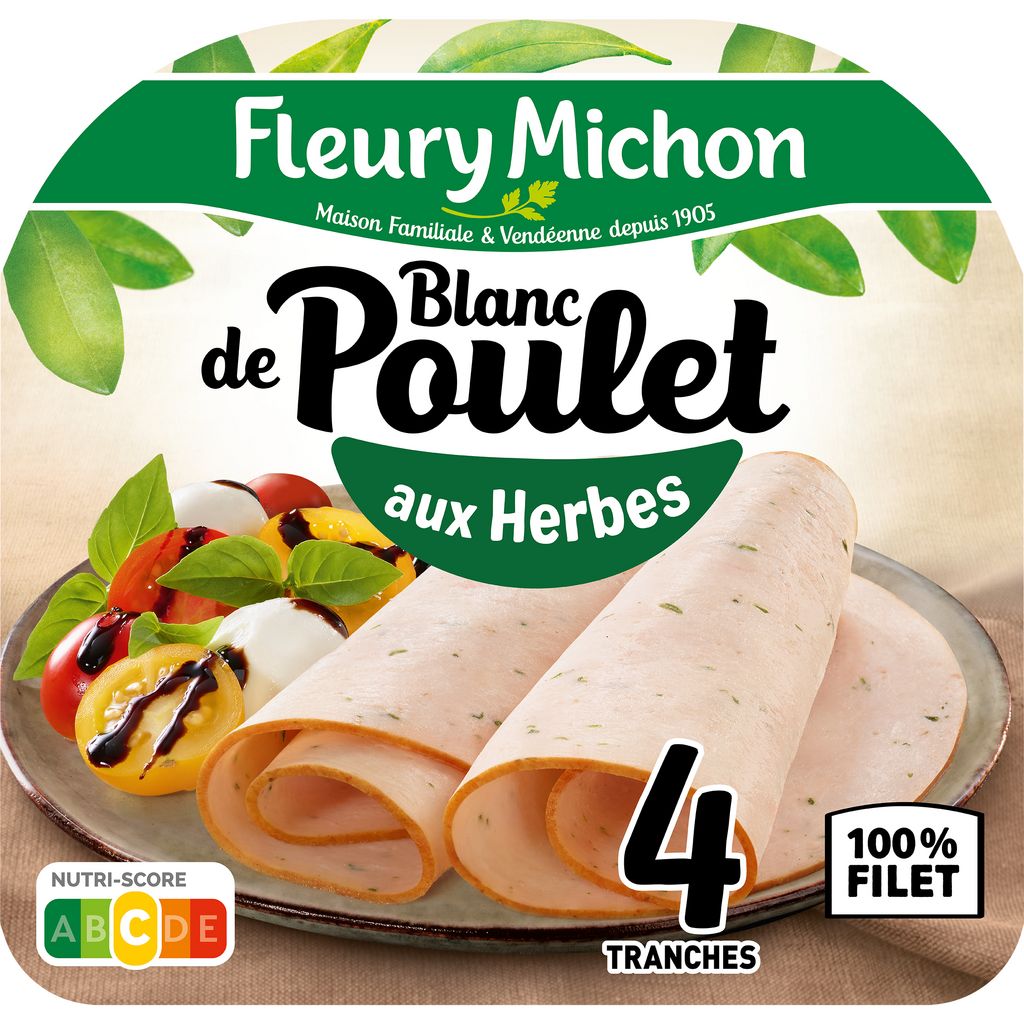 Un gourmand blanc de poulet 100% filets issu d'une recette aux fines herbes. Il est ensuite lentement cuit, ce qui lui apporte un moelleux incomparable et un goût unique.