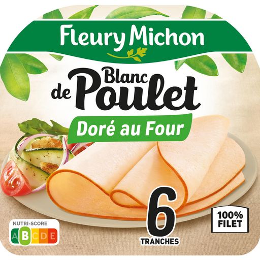 Blanc de poulet cuit de qualité supérieure, traité en salaison, doré au four