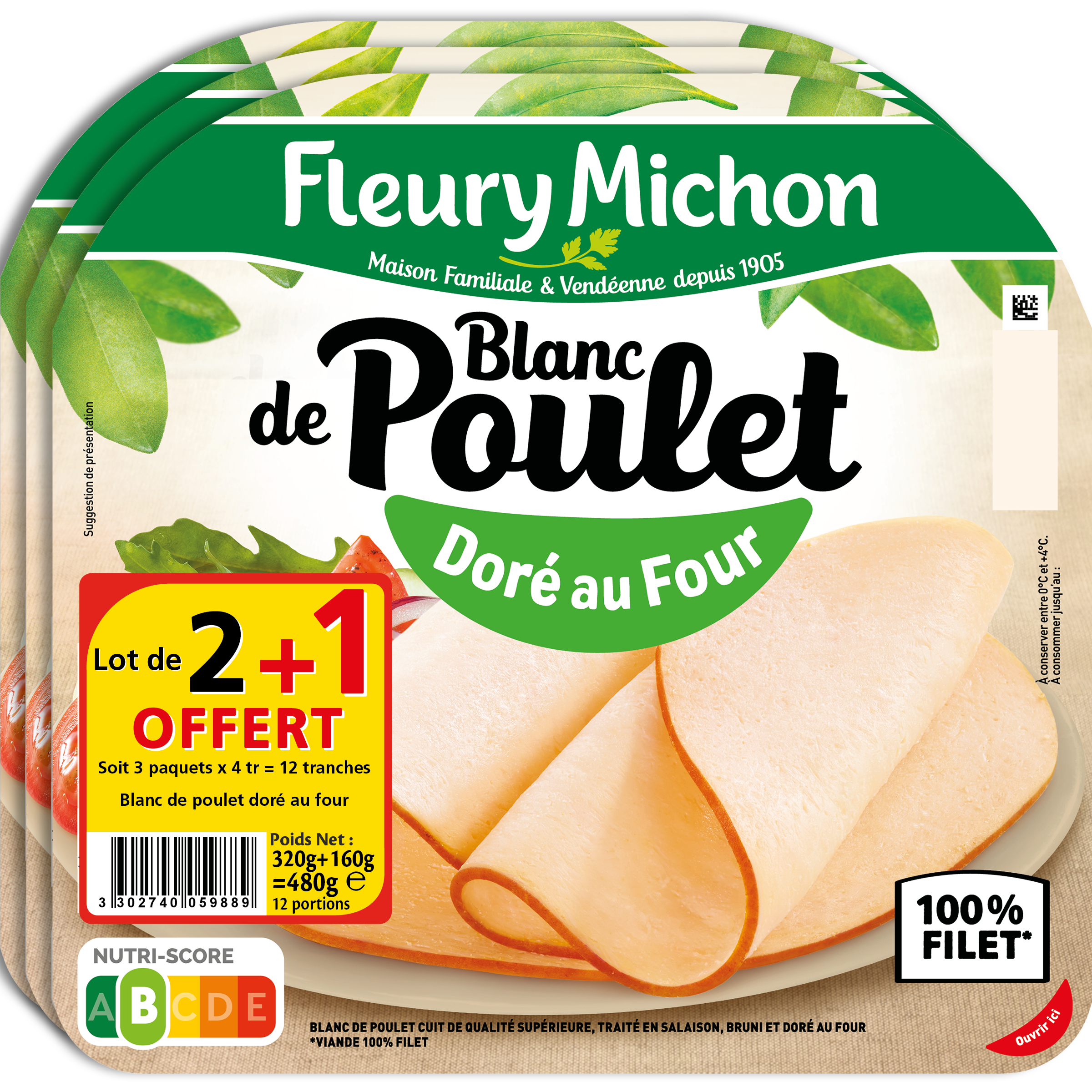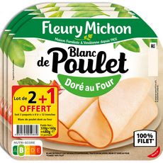 Blanc de poulet cuit de qualité supérieure, traité en salaison, bruni et doré au four