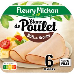Blanc de poulet cuit de qualité supérieure, traité en salaison, bruni et rôti à la broche