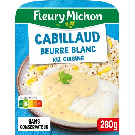 Un tendre filet de cabillaud accompagné d'un riz cuisiné au quinoa rouge et avec des carottes jaunes, relevé d'une onctueuse sauce au beurre blanc.
