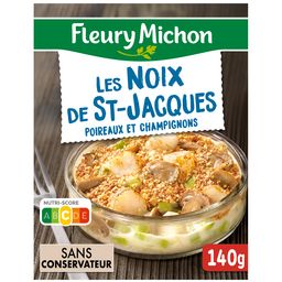 Nos noix de Saint-Jacques sont cuisinées avec des champignons de Paris émincés, du poireau, et une sauce crémeuse à base d'échalotes confites et de vin blanc relevée délicatement au Noilly Prat®.