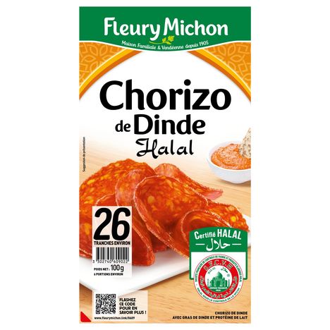 Fleury Michon propose une délicieuse recette Halal de Chorizo de Dinde cuisiné dans le respect du rite musulman. Parfait pour vos apéritifs ou vos raclettes !