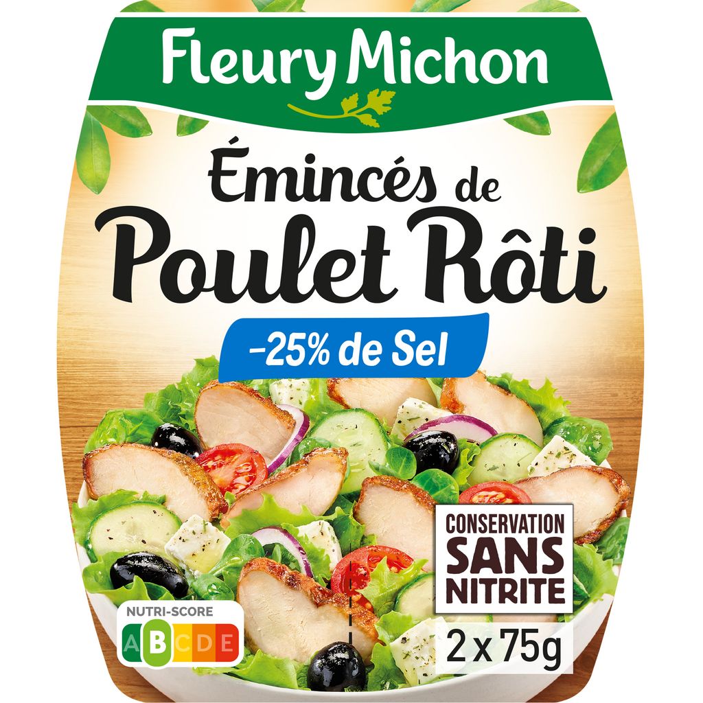 Emincés de poulet rôti réduit en sel sans nitrite