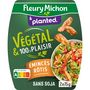 Ingrédients : Ingrédients: Matière protéique de pois réhydratée 91% (eau, protéine de pois, fibre de pois, huile de colza, sel, vitamine B12), huile de colza, arôme naturel, sucre, épices, fécule de manioc, sel, plantes aromatiques._Traces éventuelles de céréales contenant du gluten