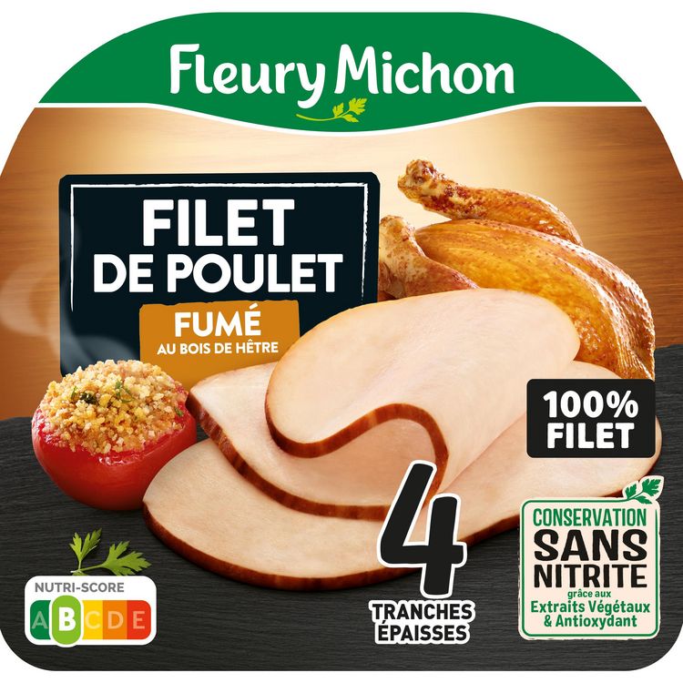 Avec de généreuses tranches épaisses, ce blanc de poulet 100% filet et Conservation Sans Nitrite est lentement fumé au Bois de Hêtre pour un goût unique.