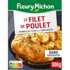 Bonjour, Nous vous remercions d'avoir partagé votre avis sur notre Filet de poulet pommes de terre sarladaise FLEURY MICHON. Nous sommes désolés d'apprendre que vous avez trouvé la préparation bourrative et sans goût, et que les pommes de terre ne sont pas croustillantes comme dans une vraie sarladaise. Nous prenons note de votre déception concernant la texture et le goût. Nous allons transmettre votre commentaire à notre service qualité afin qu'il puisse étudier ce problème de plus près et éventuellement revoir la recette. Nous espérons vous satisfaire lors d'un prochain achat. Bien cordialement.