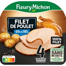 Un blanc de poulet Conservation sans Nitrite, aux tranches épaisses et généreuses pour révéler toutes ses saveurs avec 25% de sel en moins*. *Par rapport à la moyenne de la catégorie.