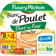 Fleury blanc de poulet sel réduit tranche fine x8+4 -360g