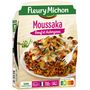 Ingrédients: Aubergines 25%, viande de boeuf 16.8%, courgettes 15%, eau, tomates 8%, oignons, EMMENTAL, huile de tournesol, concentré de tomates, amidon de riz, poudre de LAIT écrémé, huile d'olive vierge, sel, ail, BEURRE, farine de BLE, menthe douce 0.1%, sucre, cumin 0.07%, bouillon de légumes 0.06% (eau, sel, huile de colza, carottes, oignons, CELERI, thym, laurier, badiane), poudre de jaune d'OEUFS, herbes de Provence (basilic, origan, romarin), thym, épices, caramel (eau, sucre).