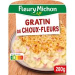 Du choux-fleurs associé au jambon Fleury Michon conservation sans nitrite, cuisiné avec une onctueuse sauce béchamel à la muscade et recouvert d'emmental.