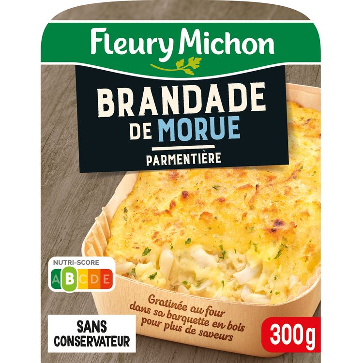 Notre délicieuse brandade de morue est cuisinée avec une onctueuse purée à la crème fraîche et au beurre. La recette est agrémentée d'une pointe d'huile d'olive et d'épices puis présentée dans une barquette en bois 100% origine France.