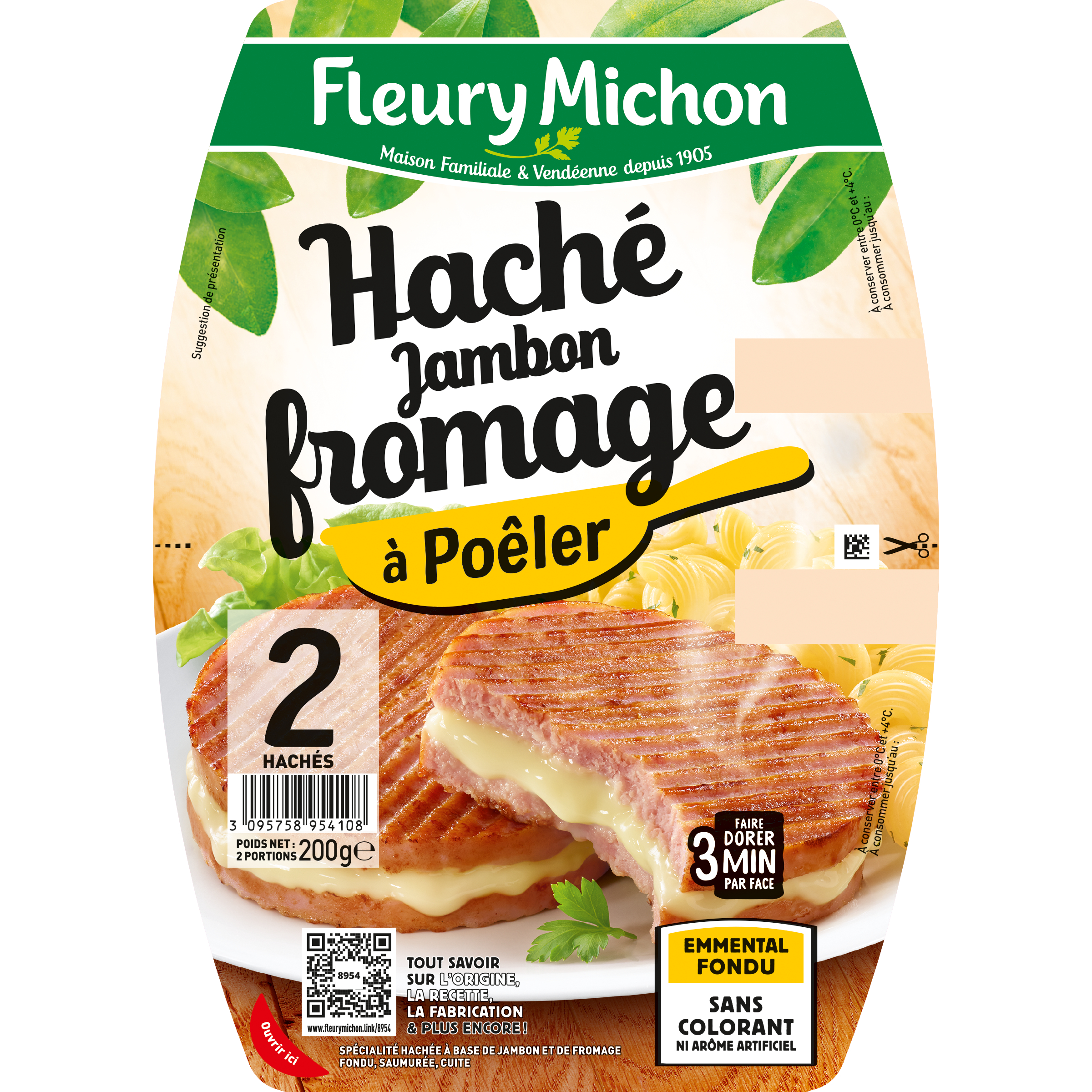 Spécialité hachée à base de jambon et de fromage fondu, saumurée, cuite