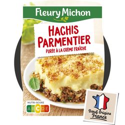 Ingrédients : Ingrédients: LAIT écrémé réhydraté, viande de boeuf 17%, eau, flocons de pommes de terre 9%, champignons de Paris 6.6%, oignons 5.6%, EMMENTAL 5.3%, CREME fraîche 5.2%, crème de riz, BEURRE 1.4%, sel, persil 0.3%, huile de colza, huile de tournesol, épices.
