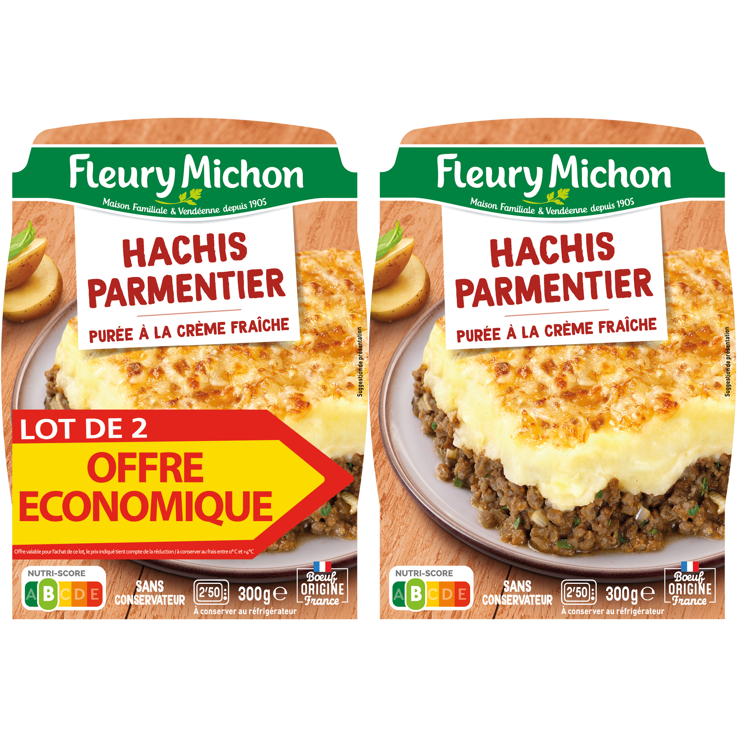 Dans cette recette retrouvez toute la gourmandise d'un hachis parmentier. Notre viande de b?uf est cuisinée avec des oignons frits, accompagnée d'une onctueuse purée à la crème fraîche.