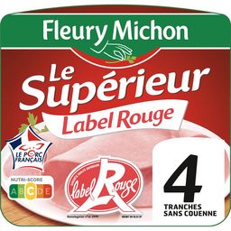 Fabriqué à partir de viande porc française, fraiche et sélectionnée, ce jambon offre un goût incomparable à tous les amateurs de la qualité Label Rouge. Un cahier des charges très exigeant garantit des conditions d?élevage, une alimentation et un procédé de fabrication contrôlés tout au long de la filière. Jambon cuit de qualité supérieure