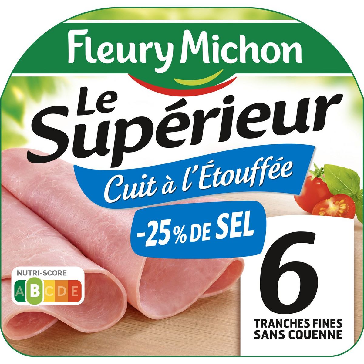 Jambon cuit à l'étouffée de qualité supérieure Un délicieux jambon finement tranché pour révéler toutes ses saveurs avec 25% de sel en moins*. Notre secret ? Nos cuisiniers charcutiers diminuent le sel et cuisinent des bouillons pour que ce soit toujours aussi bon ! *Par rapport à la moyenne de la catégorie.