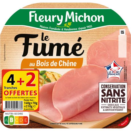 Pour les amateurs de goûts traditionnels, un jambon garanti conservation sans nitrite*, cuit avec un bouillon, puis fumé lentement pendant 3 heures au bois de chêne.