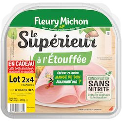 Le Supérieur, le jambon de qualité Fleury Michon cuisiné avec tout le savoir-faire de nos charcutiers, garanti Conservation Sans Nitrite* *grâce aux extraits végétaux et antioxydant