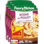 Ingrédients : Ingrédients:Semoule de couscous 41% (eau, semoule de BLÉ dur), kebab de poulet traité en salaison 20% (poulet 16%, dextrose, amidon de tapioca, épices, plantes aromatiques, sel, ail), eau, FROMAGE blanc 6,3%, huile de colza, CRÈME fraîche, raisins secs 2,8% (raisins, huile de tournesol), crème de riz, citron 0,9%, amidon de riz, menthe 0,6%, ail, sel, persil, piment 0,01%. Traces éventuelles de soja
