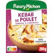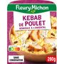 Ingrédients : Ingrédients:Semoule de couscous 40% (eau, semoule de BLÉ dur), kebab de poulet traité en salaison 20% (poulet 16%, dextrose, amidon de tapioca, épices, plantes aromatiques, sel, ail), eau, FROMAGE blanc 6,3%, huile de colza, CRÈME fraîche, raisins secs 3,4% (raisins, huile de tournesol), crème de riz, citron 0,9%, amidon de riz, menthe 0,6%, ail, sel, persil, piment 0,01%. Traces éventuelles de soja