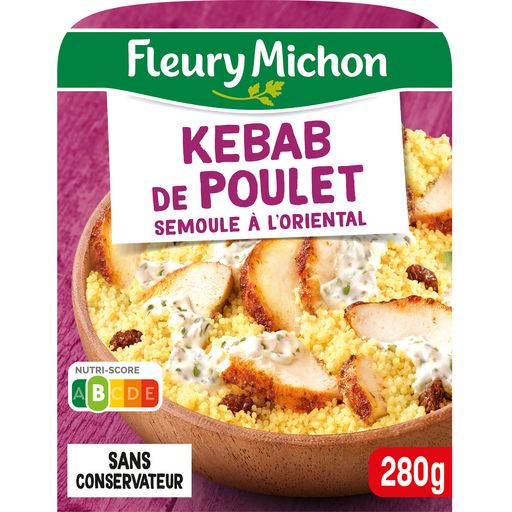 Semoule, kebab de poulet traité en salaison et fromage blanc