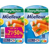 Pour élaborer nos bâtonnets Moelleux, nous nous en tenons à la recette d'origine : de la chair de poisson, de l'amidon de blé et de la fécule de pomme de terre, de l'huile de colza, de l'arôme naturel aux extraits de crabe et un peu de sel et de sucre pour le goût. Et c'est tout ! Sa couleur orange ? De l'extrait de paprika tout simplement. Pour un maximum de fraîcheur et de praticité, nos 18 bâtonnets sont présentés dans une barquette refermable. Préparation à base de chair de poisson
