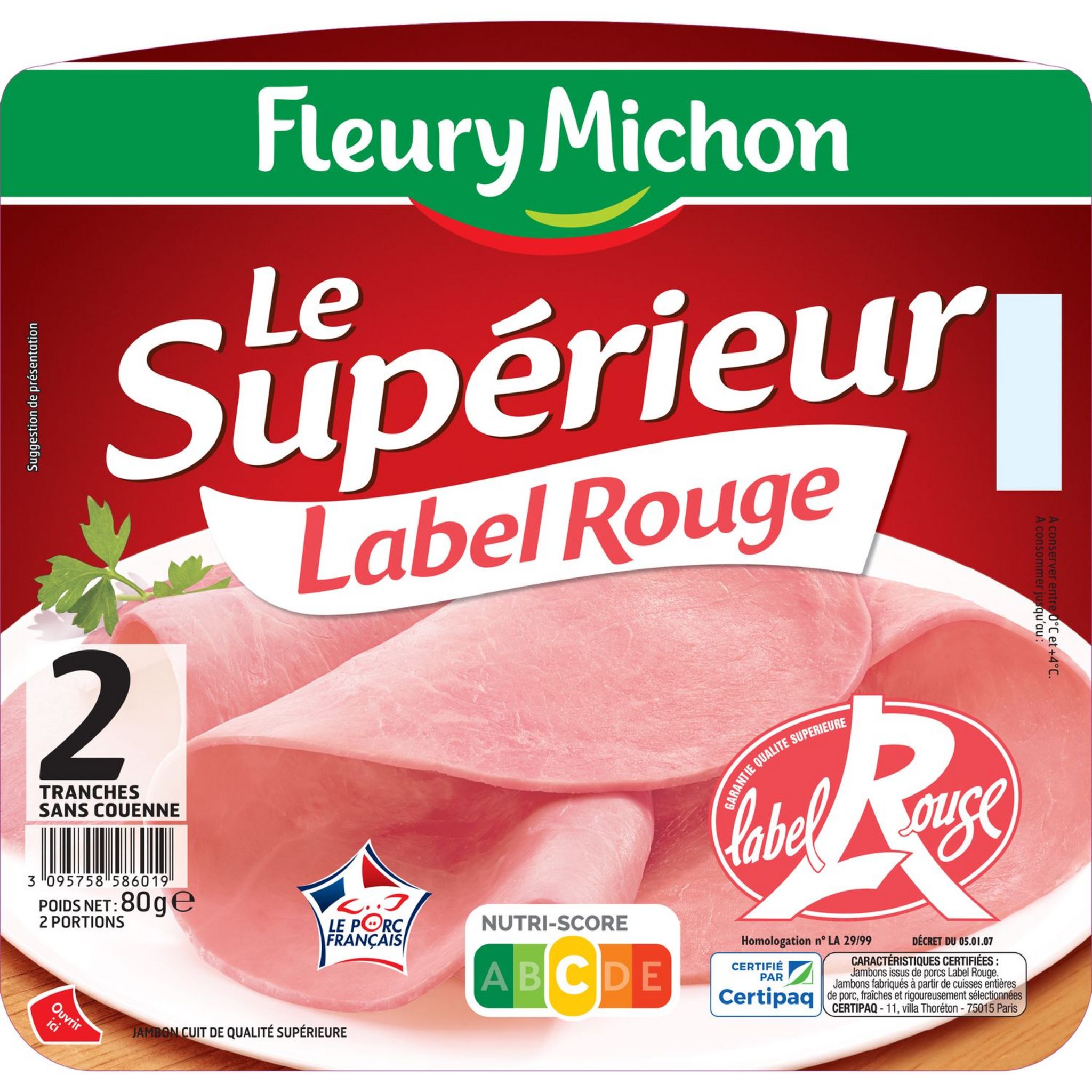 Jambon cuit de qualité supérieure Fabriqué à partir de viande porc française, fraiche et sélectionnée, ce jambon offre un goût incomparable à tous les amateurs de la qualité Label Rouge. Un cahier des charges très exigeant garantit des conditions d?élevage, une alimentation et un procédé de fabrication contrôlés tout au long de la filière.