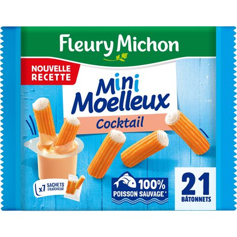 L'iconique Bâtonnet Moelleux au format mini avec une délicieuse sauce Cocktail travaillée comme une sauce maison. Emballés dans des sachets fraîcheur, ils se prêtent parfaitement à un usage nomade pour toutes les envies.