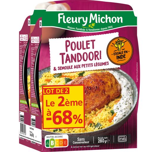 Ingrédients : Ingrédients: Semoule de couscous 35% (eau, semoule de BLE dur), filet de poulet mariné (poulet 16.8%, amidon de riz, sel, jus de citron), légumes 14% (courgettes 7%, carottes 7%), FROMAGE blanc 9.9%, CREME fraîche, eau, huile de colza, citron, plantes aromatiques 0.9%, amidon de riz, sel, épices 0.5%, concentré de tomates, huile d'olive vierge, gélatine de boeuf, curry (épices, aromates, sel), ail, oignons._Traces éventuelles de moutarde