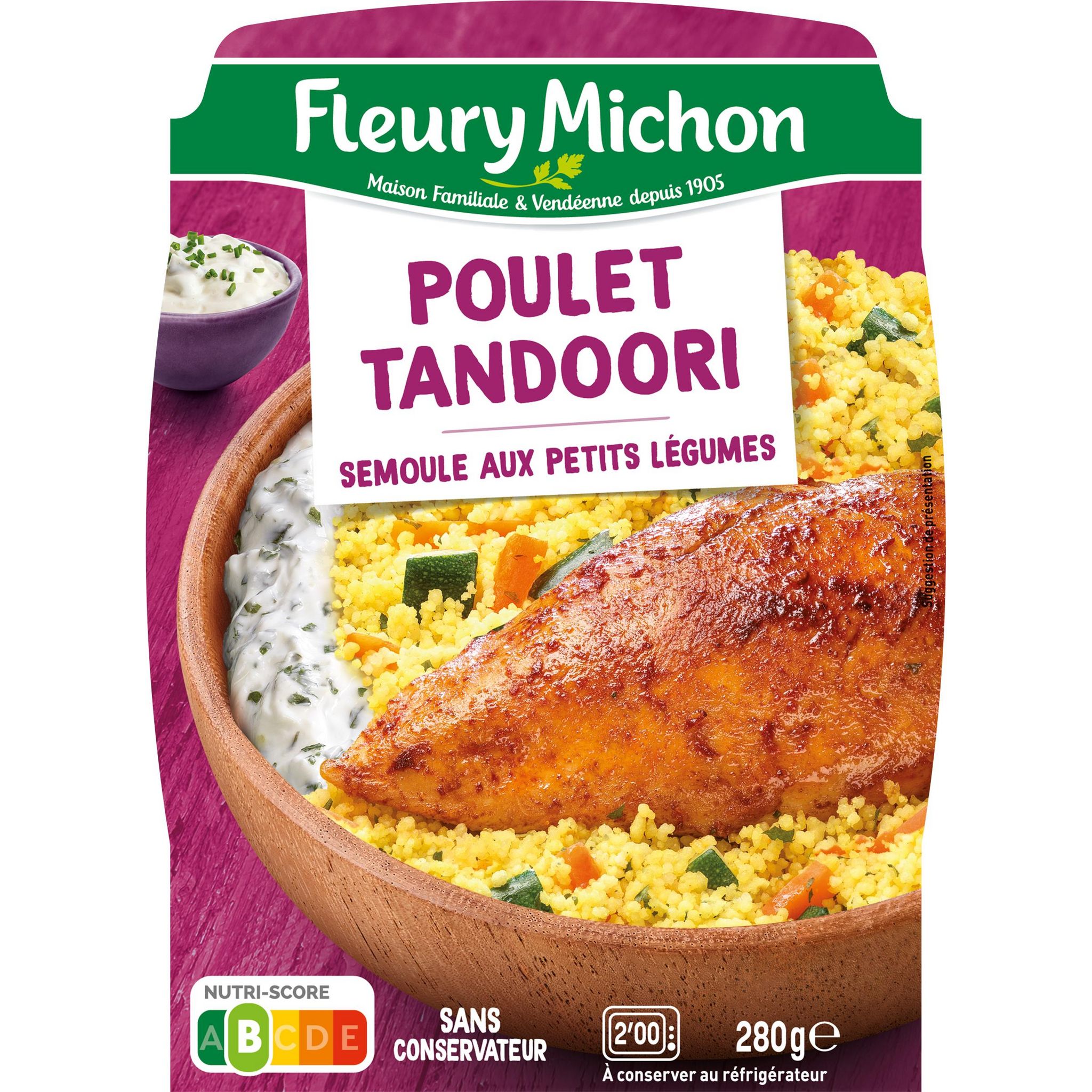Un généreux filet de poulet mariné dans un mélange d'épices, accompagné de semoule aux petits légumes et d'une délicieuse sauce au fromage blanc.